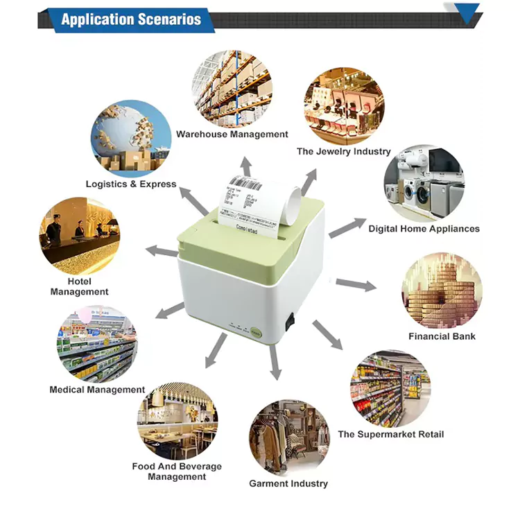 Bere inprimatzeko abiadura 250 mm/s-koa da, 72 mm edo 64 mm-ko inprimatze-zabalera eraginkorra duena. Barra-kode anitz onartzen ditu, UPC-A, EAN-13, CODE39 eta CODE128 barne, eta hainbat industriarako egokia da, hala nola ostalaritza, saltoki handiak eta supermerkatuak.