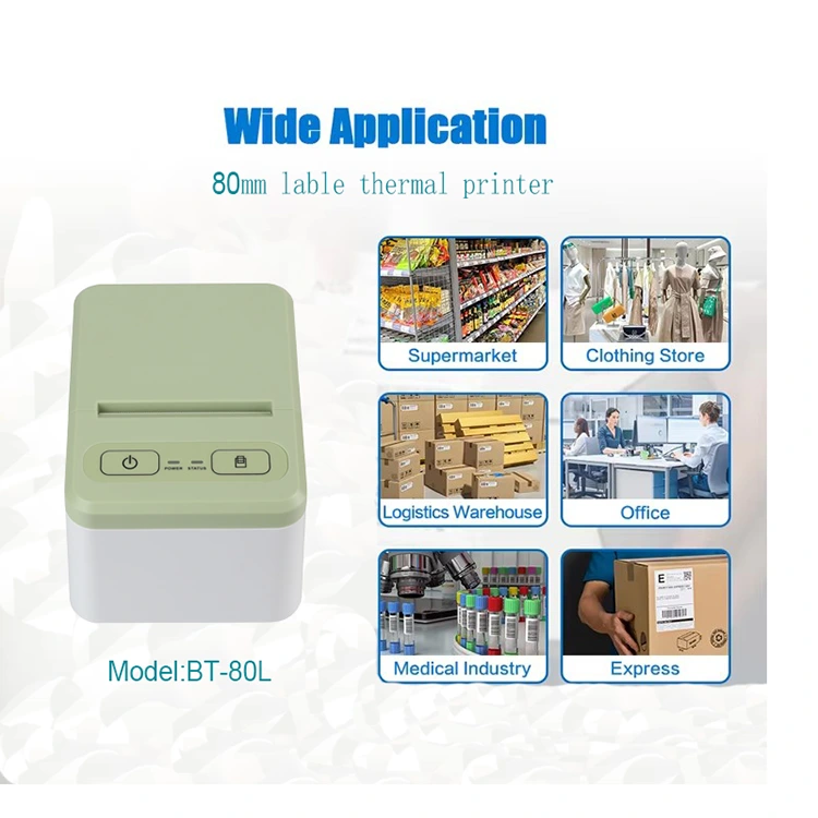 Peite 80L etiketa termikoen inprimagailu txikia oso egokia eta erosoa da etxean zein lantokian erabiltzeko. Etiketa-inprimagailuen bereizmena altua da orokorrean, kalitate handiko etiketa argiak eta iraunkorrak inprimatzeko gai dira, eta orbanen aurkako, iragazgaitza eta higaduraren aurkako propietate onak dituzte. Osagarria inprimatzeko buru berria da, 9V2A kalitate handiko egokitzailea, paketearen tamaina 17 * 15,5 * 11 cm da eta 0,75 kg pisatzen du, 24 pieza kartoi bat.